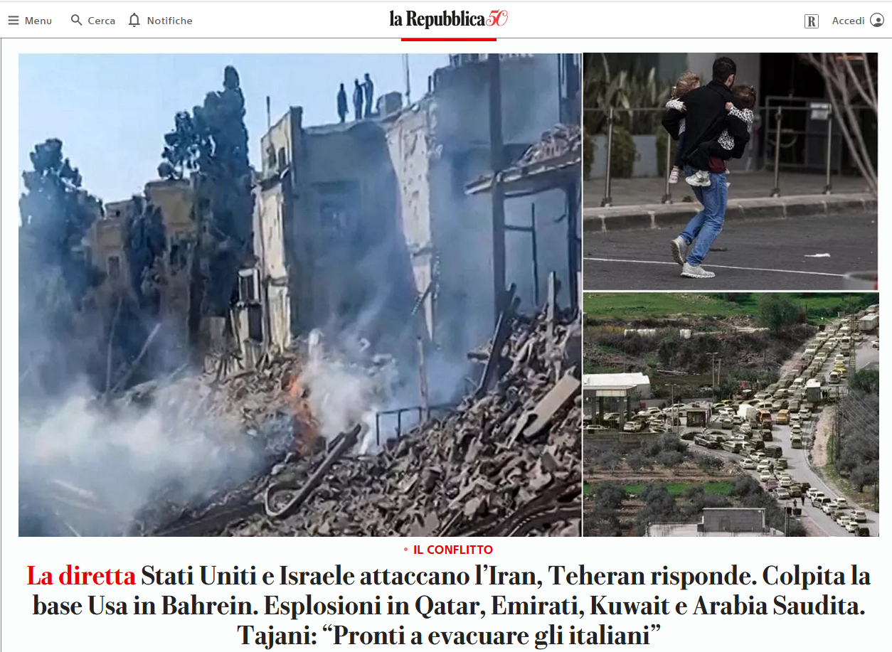 Le prime pagine dei giornali: quattro narrazioni della stessa guerra #NOBAVAGLIO Sabato 28 febbraio 2026…